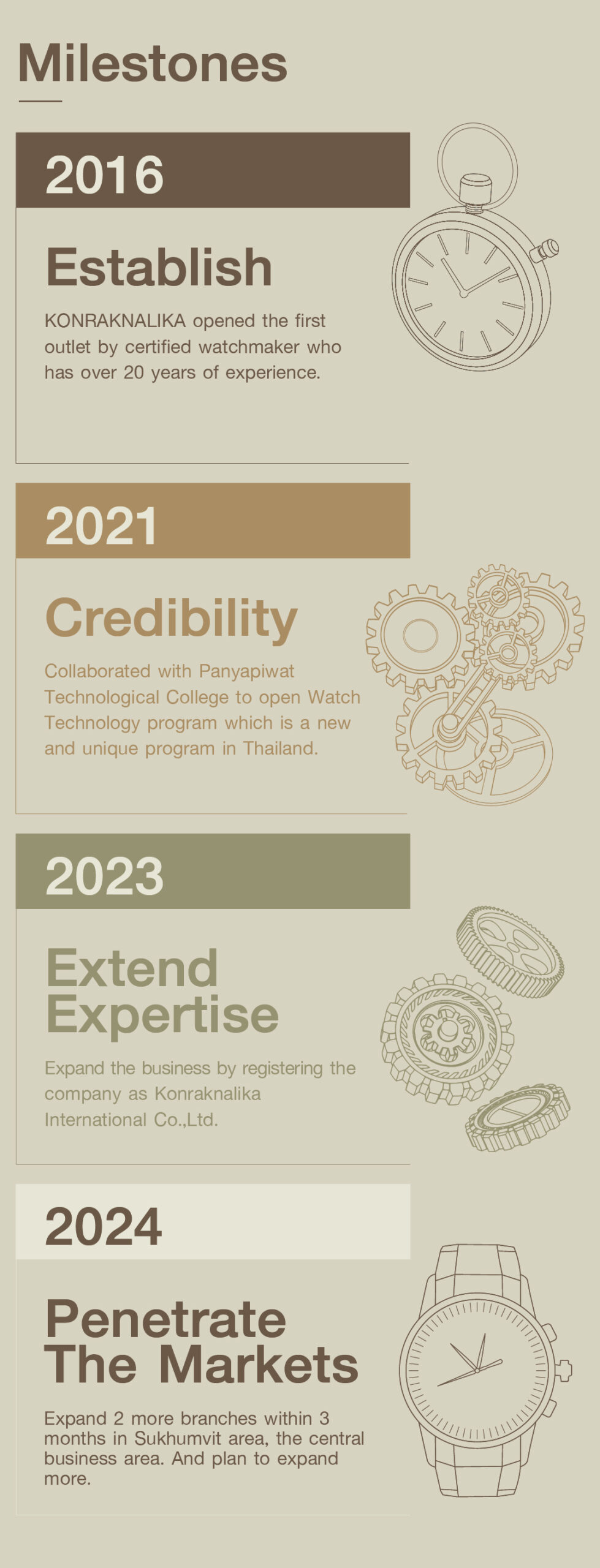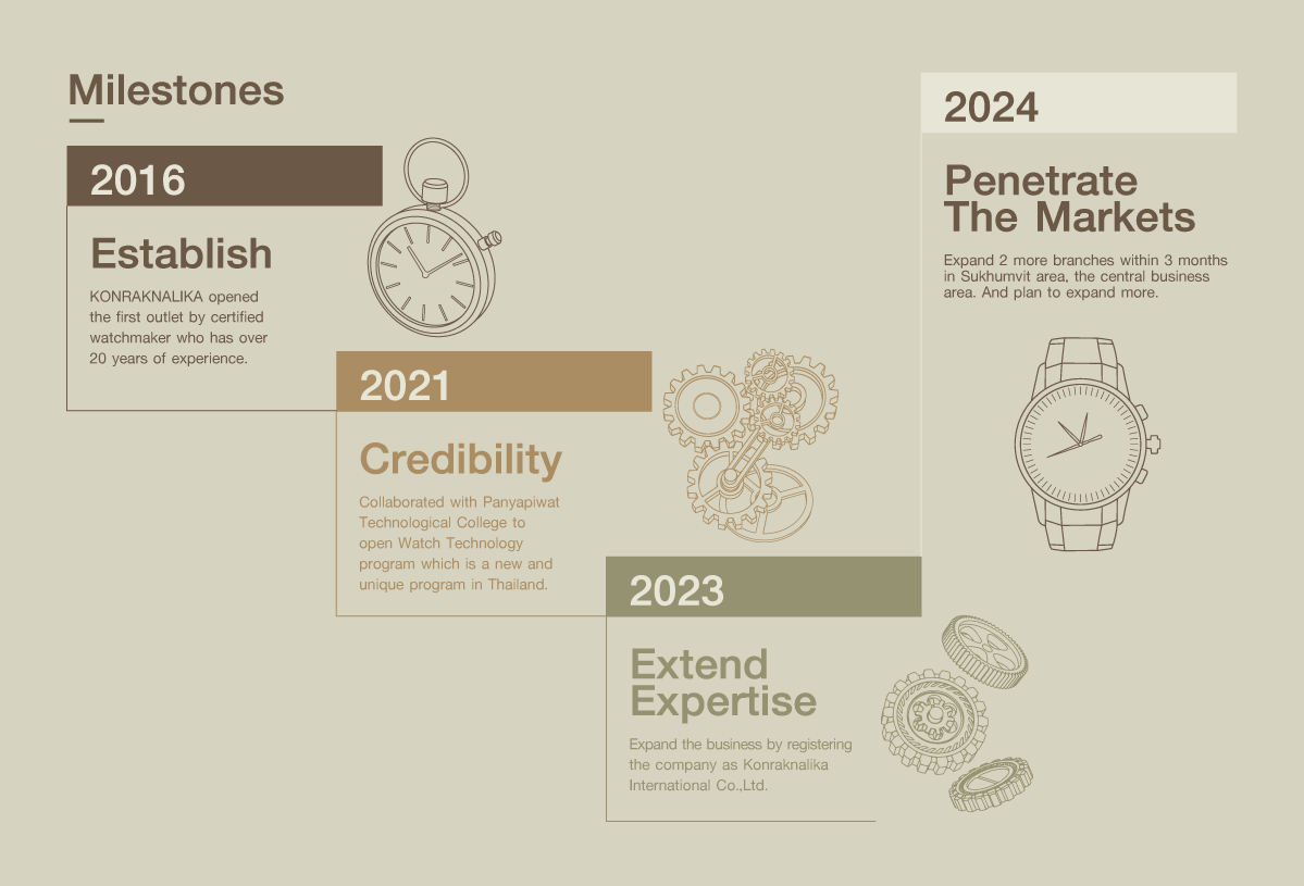 KONRAKNALIKA is established in 2016. Our team of certified watchmakers have over 20 years of combined experience in repairing, servicing, and maintaining luxury timepieces. We specialize in servicing high-end brands such as Rolex, Patek Philippe, Audemars Piguet, and many more.